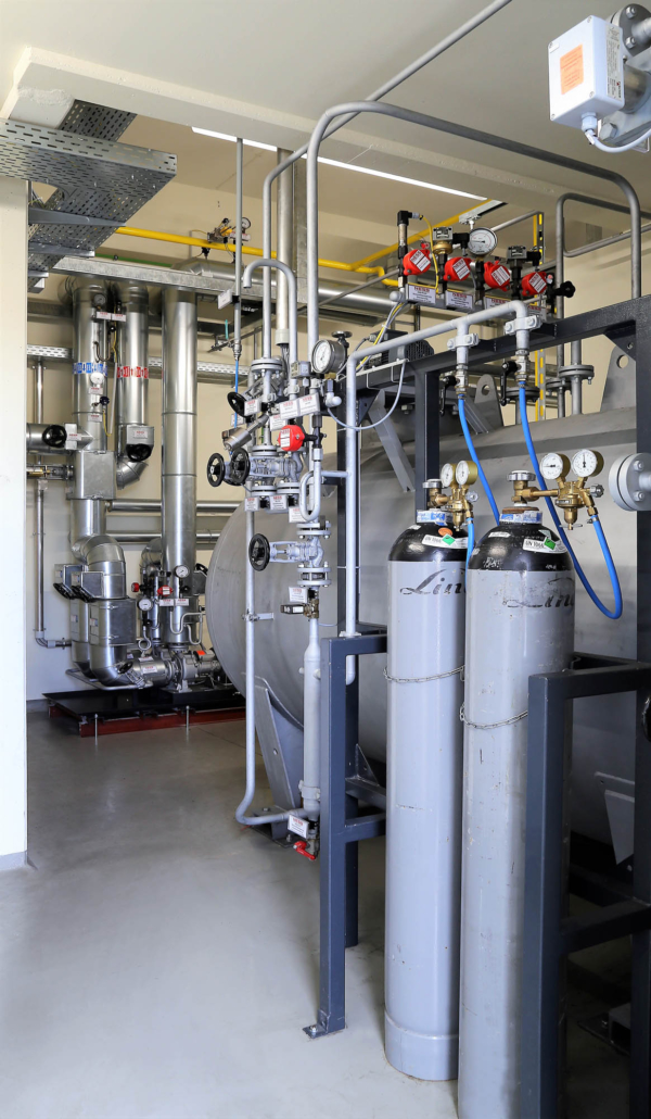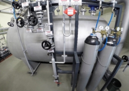 The nitrogen blanket in the drain tank counteracts the formation of condensate (water) and thus corrosion. In addition it prevents the accumulation of explosive gases in the drain tank. The large nitrogen volume (expansion and drain tank) reduces the effects of pressure changes, significantly reducing nitrogen consumption over time.